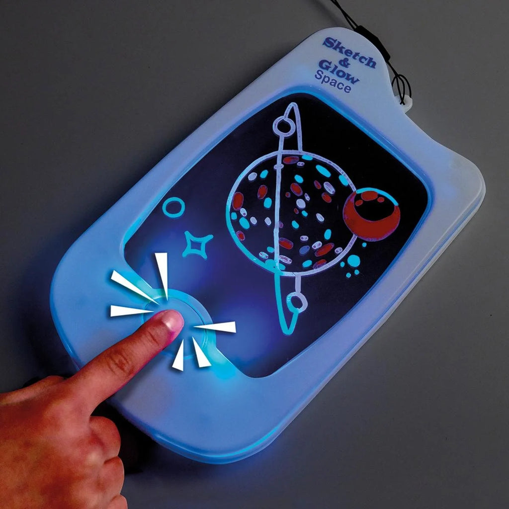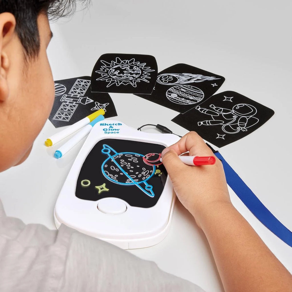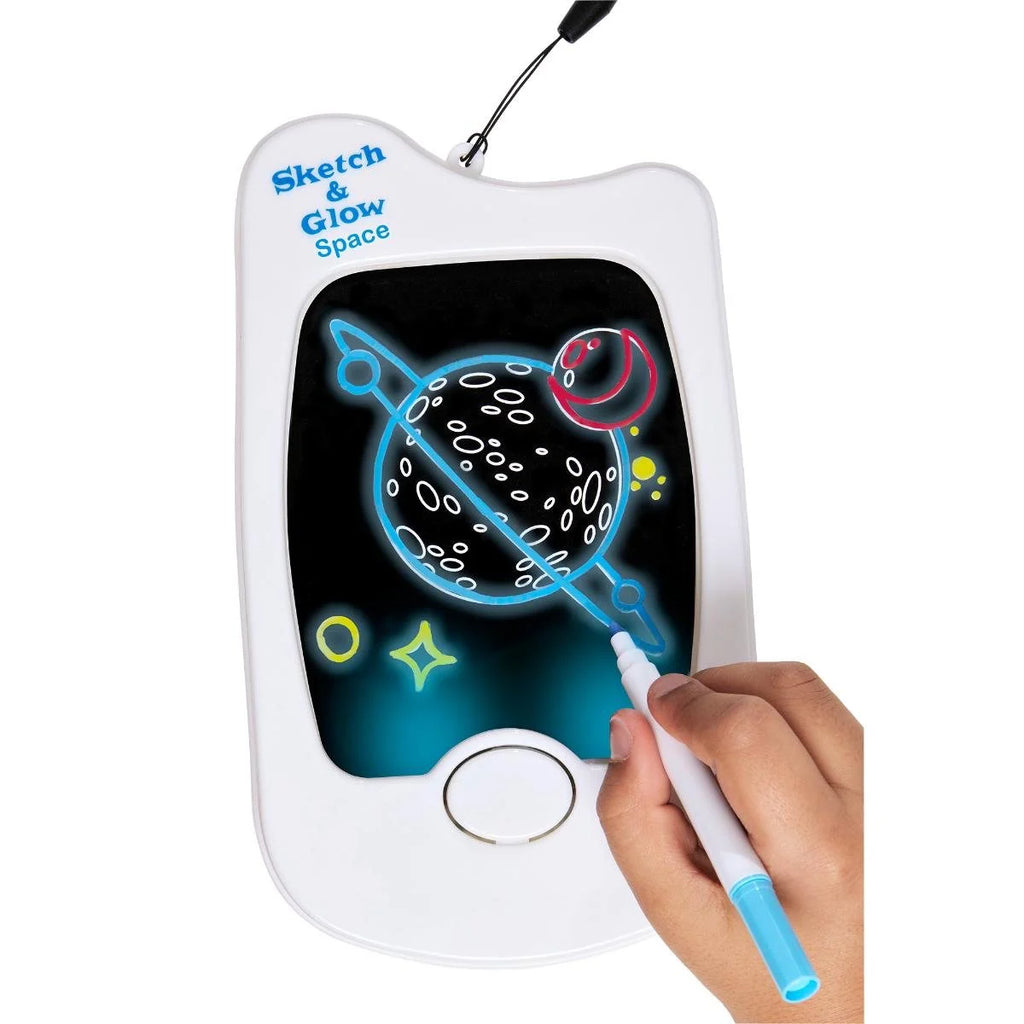 Hours of fun with this unique fairytale sketch and glow set! Simply insert a trace card of your choice and start creating with the coloured pens provided. The handy lanyard makes this perfect for on-the-go creations. A multi-coloured light effect will bring your designs to life! Simply use the cloth to wipe the pad clean and start again!