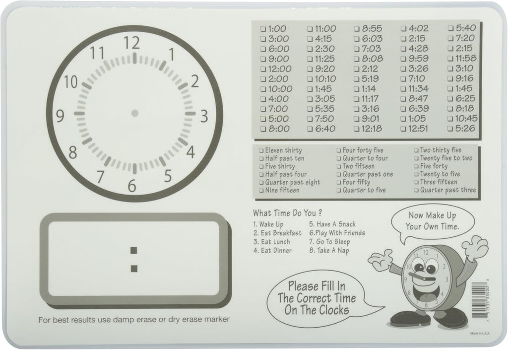 - For best results use Learning Placemat damp erase markers (sold separately)