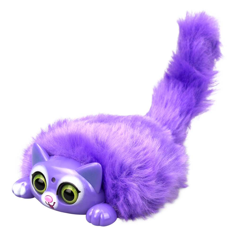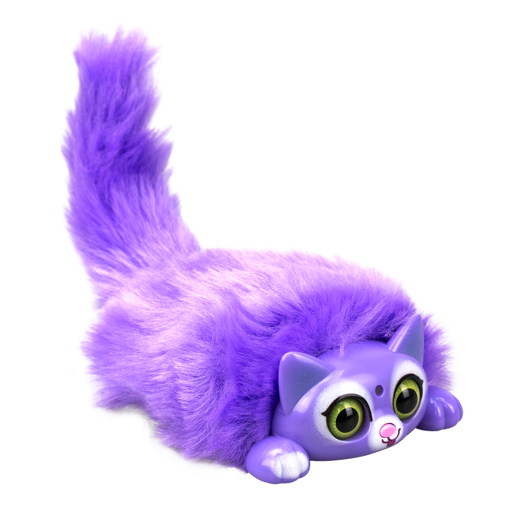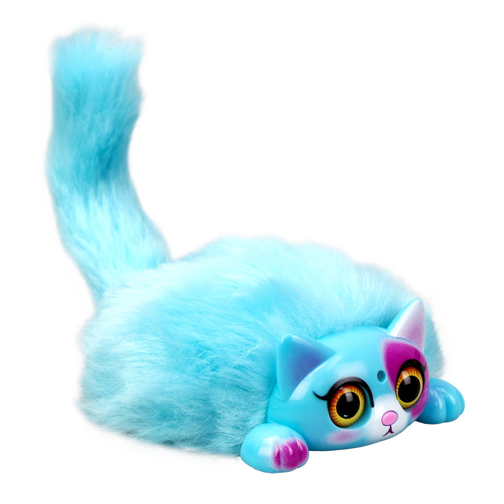 MINI PURR is a battery operated interactive kitten pet. Play with MINI PURR by petting its head or pressing its nose for light and sound effects. The eyes of MINI PURR will light up with sounds as a reaction to your touch. Pull its lever to move its fluffy tail. Try blowing air into FLUFF’s face and watch its adorable reactions! MINI PURR can connect with each other to sing in a choir. 6 different colours and styles are available for collecting. Recommended age 3+ years old.