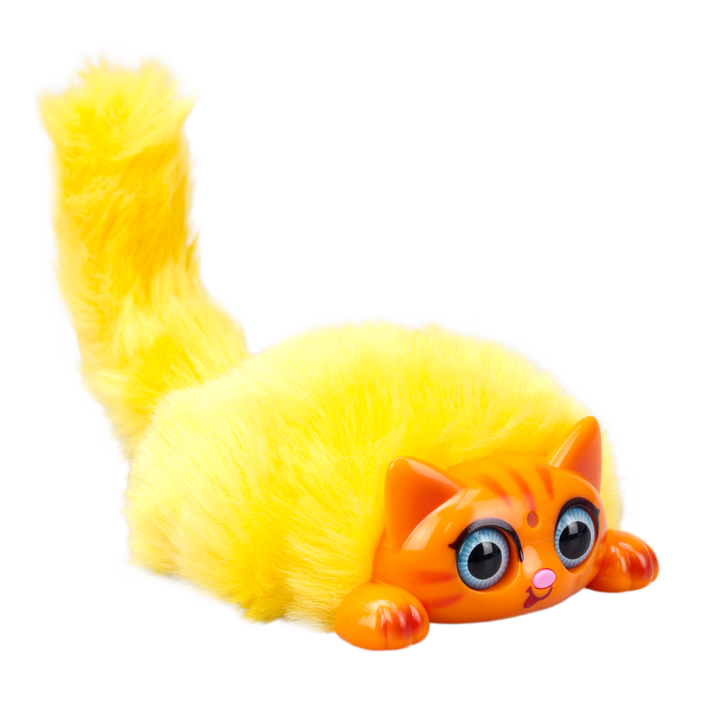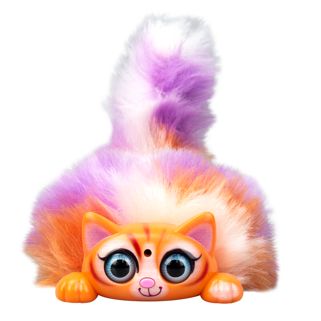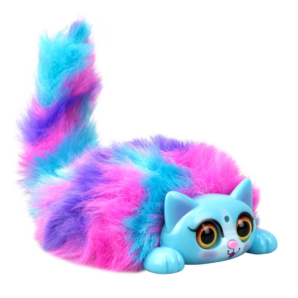 MINI PURR is a battery operated interactive kitten pet. Play with MINI PURR by petting its head or pressing its nose for light and sound effects. The eyes of MINI PURR will light up with sounds as a reaction to your touch. Pull its lever to move its fluffy tail. Try blowing air into FLUFF’s face and watch its adorable reactions! MINI PURR can connect with each other to sing in a choir. 6 different colours and styles are available for collecting. Recommended age 3+ years old.