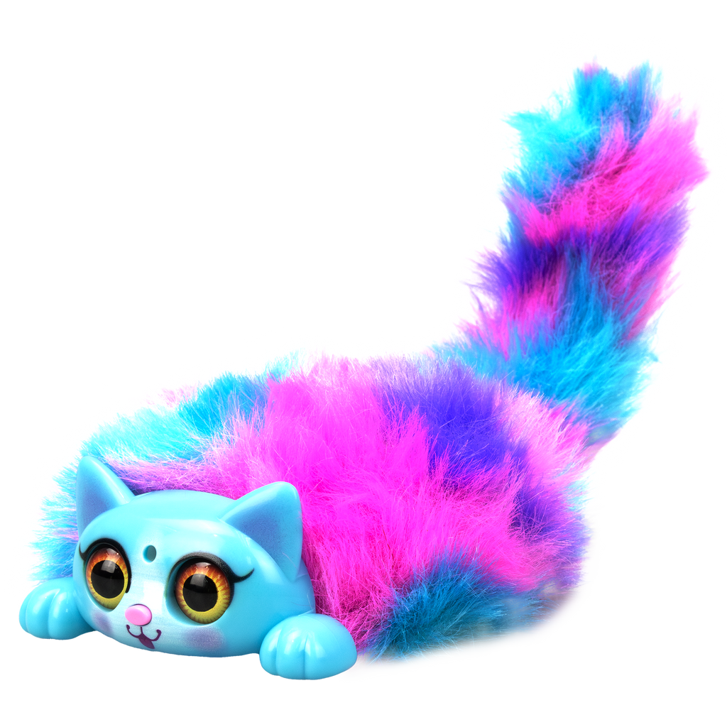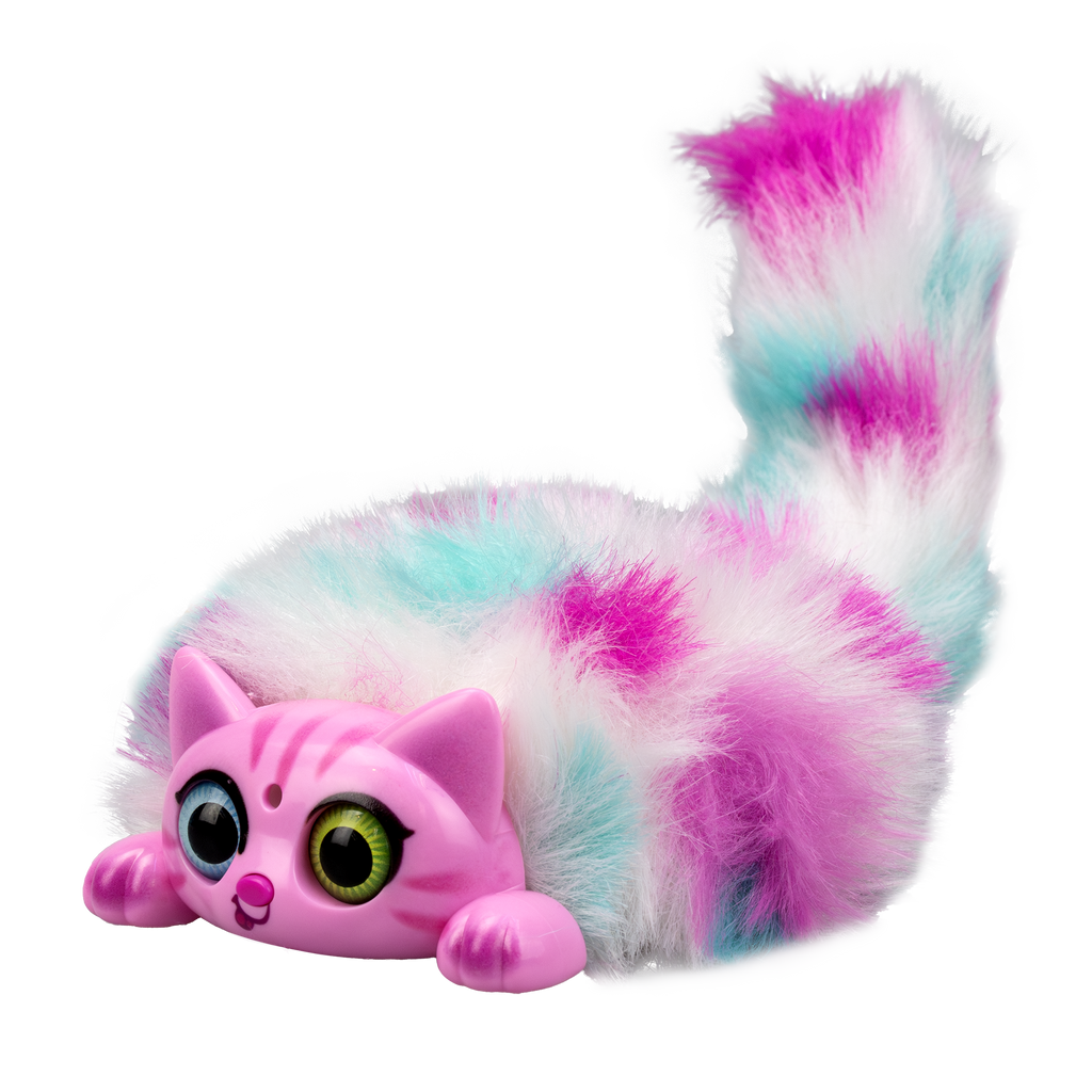 Key Features + Product details: • Electronic interactive pet with nice-to-touch fur. • Pet head / press nose for light and sound effects. • Blow to the face for reactions. • Pull the lever to move the kitten's tail. • 6 different colours.