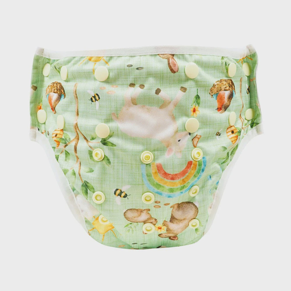 Our Swim Nappies are designed to contain number 2s at the pool or beach and have no absorbency, as that will weigh Bub down when in the water.