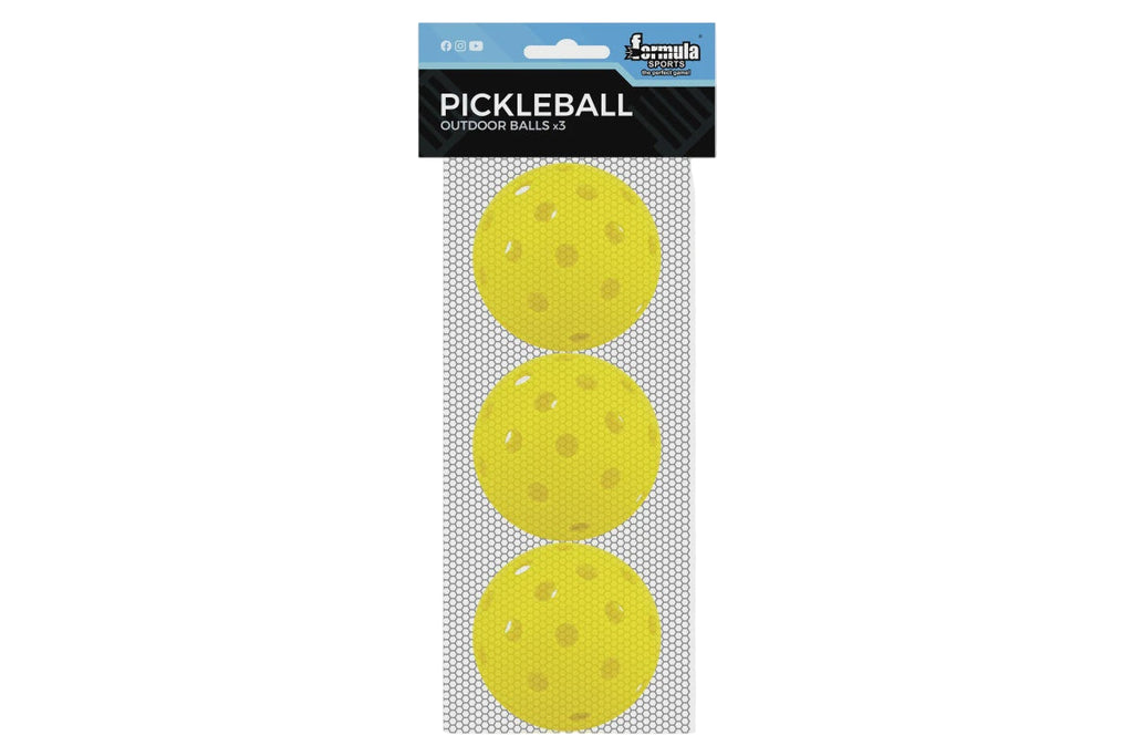 Pickleball Outdoor Balls x3 from Formula Sports are high-quality pickleballs that come in a reusable mesh drawstring bag.