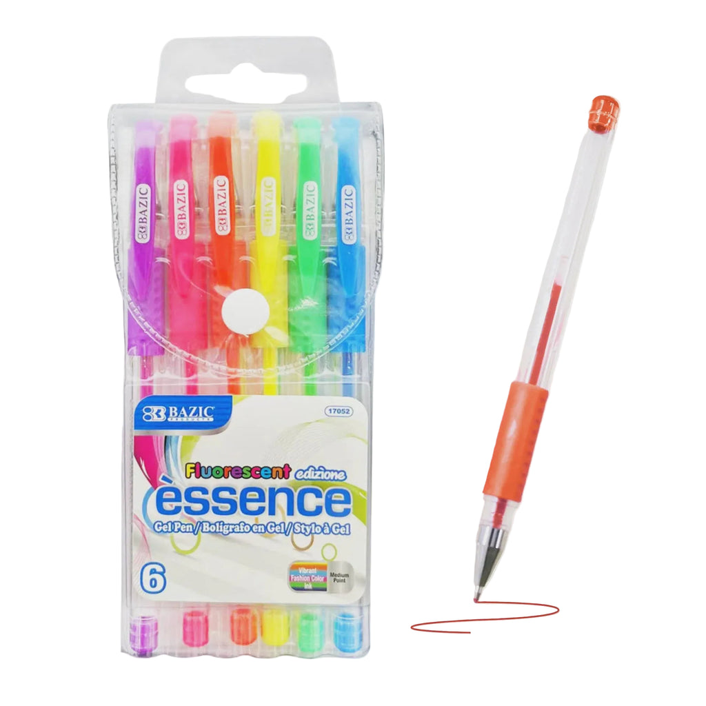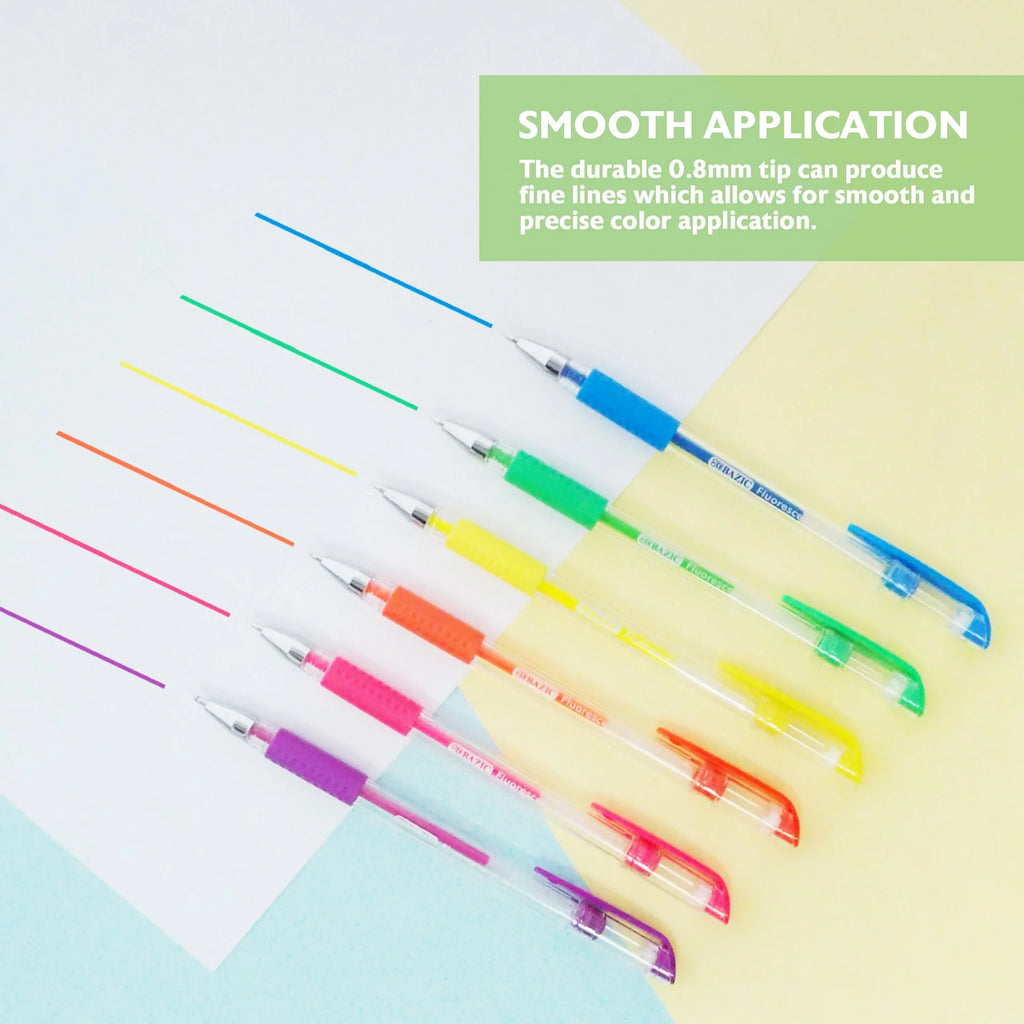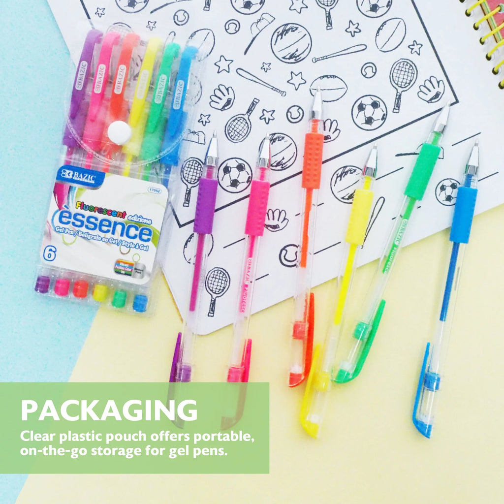 Bazic | 6 Fluorescent Colour Essence Gel Pen w/ Cushion Grip