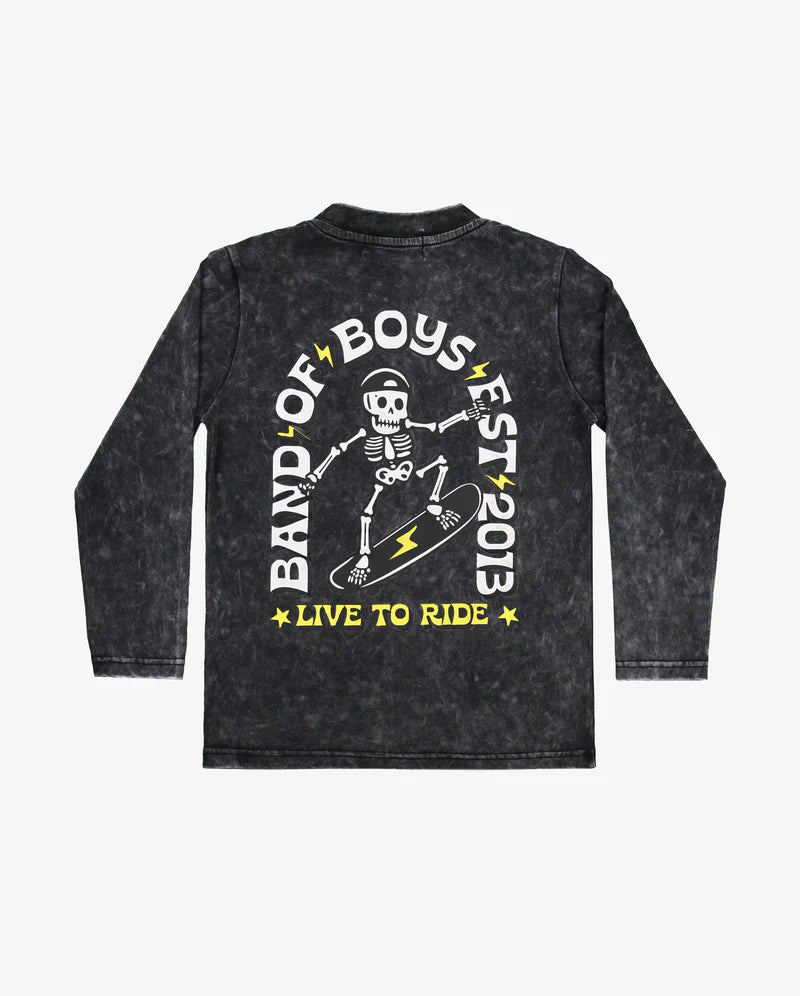 The Black Wash Bones Skate Tee by Band of Boys brings vintage wash and bold graphic energy together. Featuring standout Bones artwork on a washed black base, this long-sleeve tee is made for layering or wearing solo.