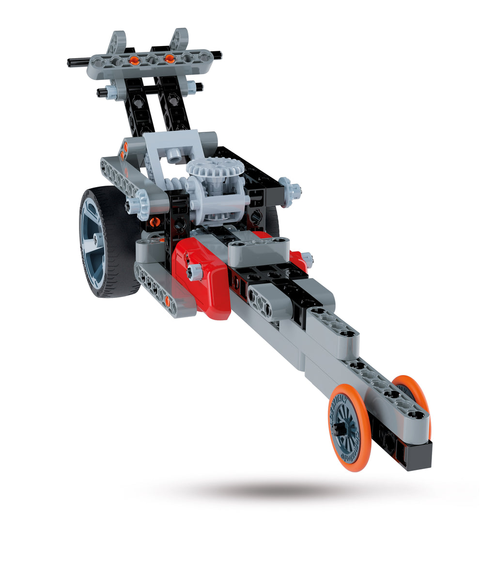 2 dynamic models can be built: a dragster and a roadster, and transmission mechanisms can also be checked.