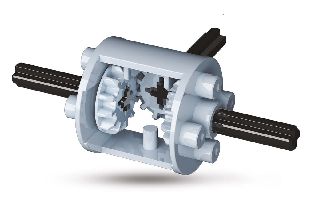 Contains more than 130 interchangeable components, including: gearbox, gears, rims, tyres, elastics, bars, brushes, sheaves and pins.