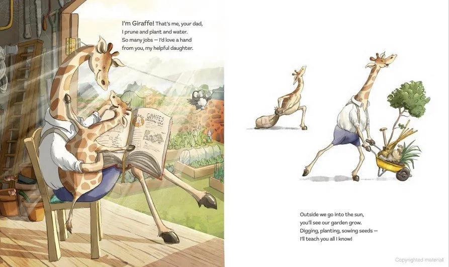 Meet green-hoofed Giraffe, unstoppable creator of the most magnificent garden. But when he injures his neck, will all his hard work go to ruin? Not if Giraffe Junior has anything to do with it!