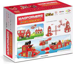 Build a rescue ladder truck, fire station and more with the Magformers 50-Piece Amazing Rescue Set!